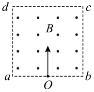 7. 如图,边长为l的正方形abcd内存在匀强磁场,磁感应强度大小为B,方向垂直于纸面(abcd所在平面)向外.ab边中点有一电子发源O,可向磁场内沿垂直于ab边的方向发射电子.已知电子的比荷为k.则从a、d两点射出的电子的速度大小分别为