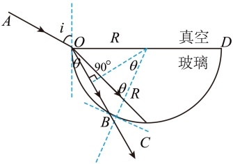 D.由几何关系知光在玻璃中传播的距离