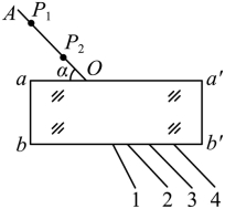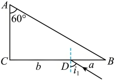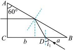 设折射光线与AB边的交点为E,由几何知识可知在AB的入射角为